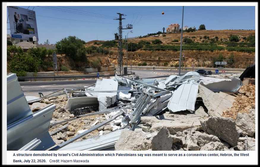 On the West Bank the State does not even recognise that it has any responsibility to protect the inhabitants of the territories despite its responsibilities as the occupying power under international law. So when residents of Hebron erected a building to be used as a Coronavirus testing centre the Civil/Military Administration had no hesitation in demolishing it.