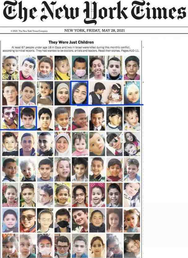 The faces of the child victims of Israel’s latest attack on Gaza – American Zionist leader Abe Foxman accused the NYT of a ‘blood libel’ i.e. anti-Semitism