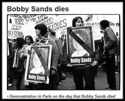 This was the context in which the hunger strikes took place and the sacrifice of Bobby Sands and the other 9 men. Eventually the relatives of the hunger strikers insisted that the strike was called off but the demands were effectively won by then. In any event the British government had lost politically and northern Ireland would never be the same again.