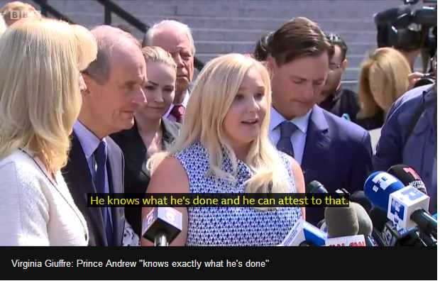 Andrew casts doubt on the famous photograph with a 17 year old Virginia Roberts, suggesting that it is photo-shopped, that his fingers didn’t fit but he doesn’t categorically state that it is a forgery. Why? Because the negative might yet turn up. He is careful not to say anything which might prove a lie in the future.