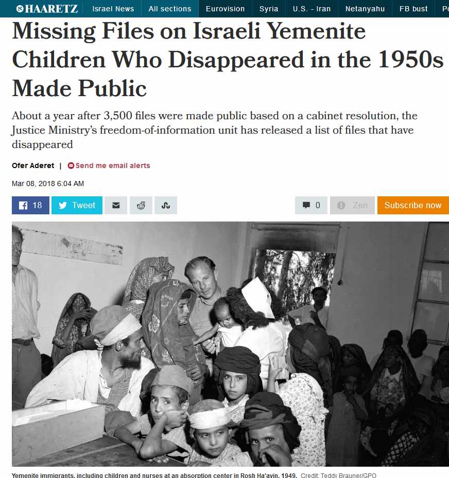 “a Knesset committee followed up by confirming earlier this month that Yemenite babies died during the 1950s after state medical institutions conducted experiments on them.”15