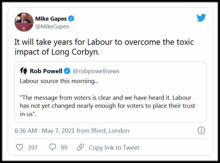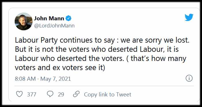 The evidence is crystal clear. What caused Labour to lose in 2019 was not Corbyn’s radical manifesto but the determination of the Labour Right that given the choice they would prefer to see Boris Johnson in power than Corbyn. The Labour Right, Hodge, Tom Watson, Wes Streeting, Mann and Austin, acted as a fifth column. If Corbyn and McDonnell had shown the guts to expel half a dozen of them it would have sent a signal to the coup mongers that their days were numbered.