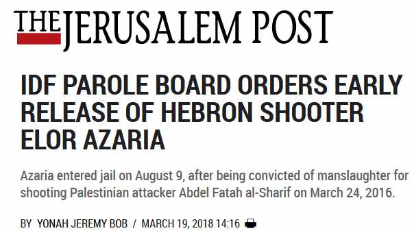 | Racist murderer Elor Azaria receives the same sentence as Ahed – Palestinian life is cheap |