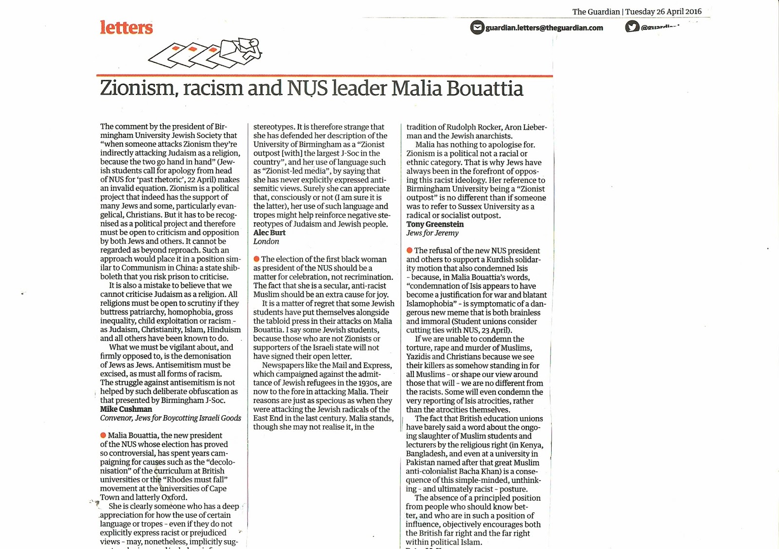 October last year, the Guardian printed a letter from Jewish members of