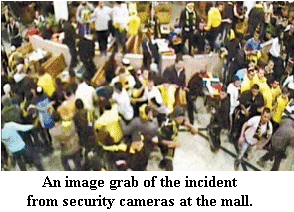 The entire episode, which occurred at Jerusalem’s Malha Mall on Monday night, was captured on closed-circuit television, but Israeli police made no arrests, and the incident received no media attention until yesterday, prompting fury in Israel’s blogosphere.