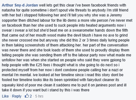 One particularly irresponsible post was that of Alan Thomas Friend and Unblock Natasha Allmark — A word to the left. Irresponsible because there is a lot of direct evidence that Ms Allmark has indeed been threatening people with informing on them, that her politics seem remarkably flexible, e.g. she is apparently a member of the Lib Dems, has attacked Corbyn and yet claims to have voted for him. Work that one out!