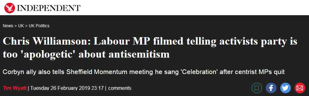 When Chris Williamson was suspended, after his speech to Sheffield Momentum had been twisted and distorted to mean its exact opposite, I wrote that ‘The Suspension of Chris Williamson MP is Shameful – This May Be the End of the Corbyn Project.’