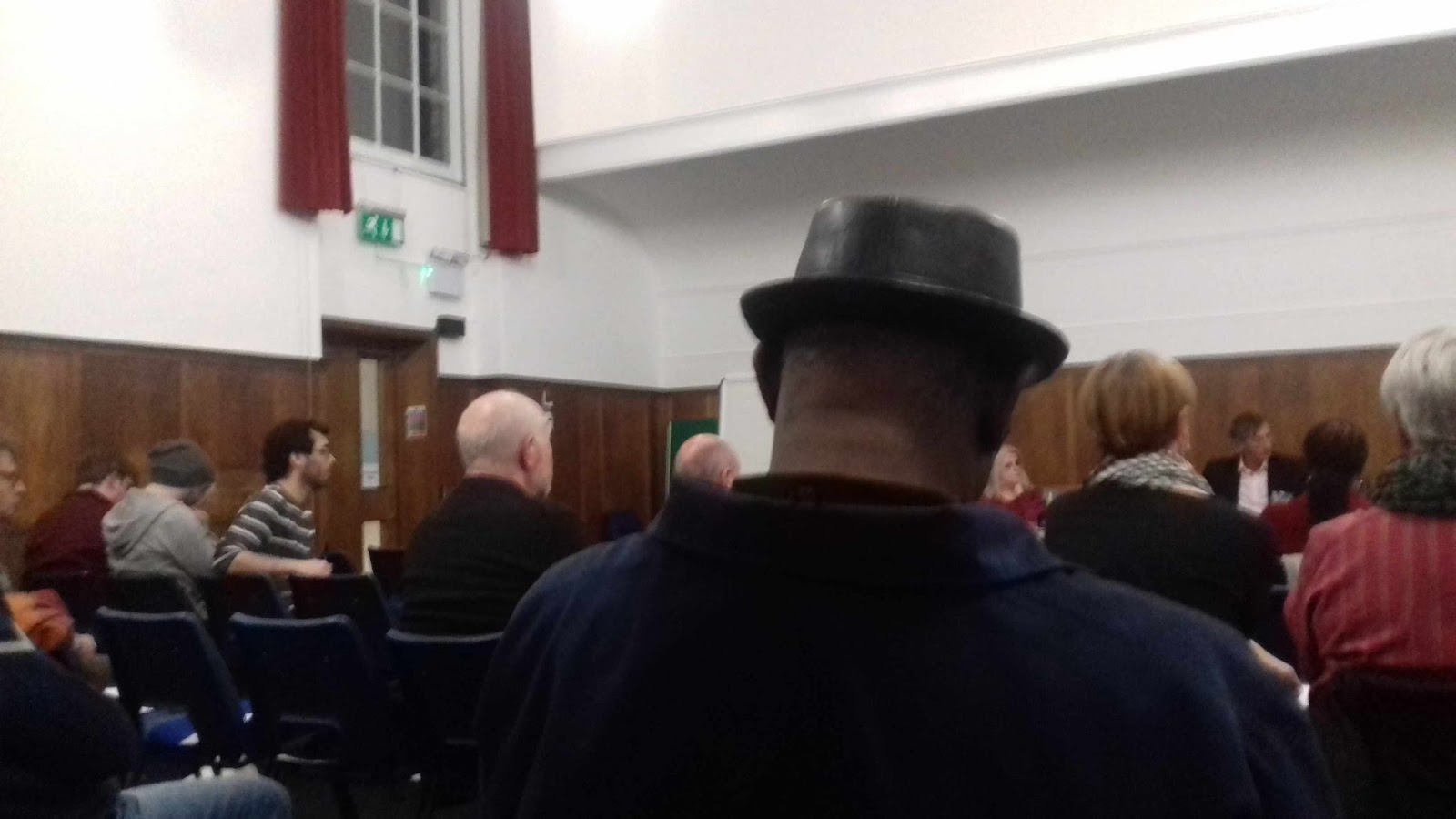 Meeting House in Brighton tonite. The meeting was co-chaired by Sarah Pickett and Greg Hadfield. A lot