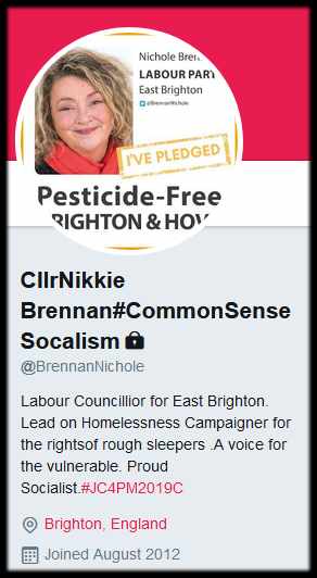 Nikki Brennan, who was forced out of her position as Vice-Chair of the Housing Committee, has been a long-time campaigner over housing issues and against homelessness in the City. She too is an active campaigning councillor in her East Brighton, mainly Whitehawk, part of Brighton.