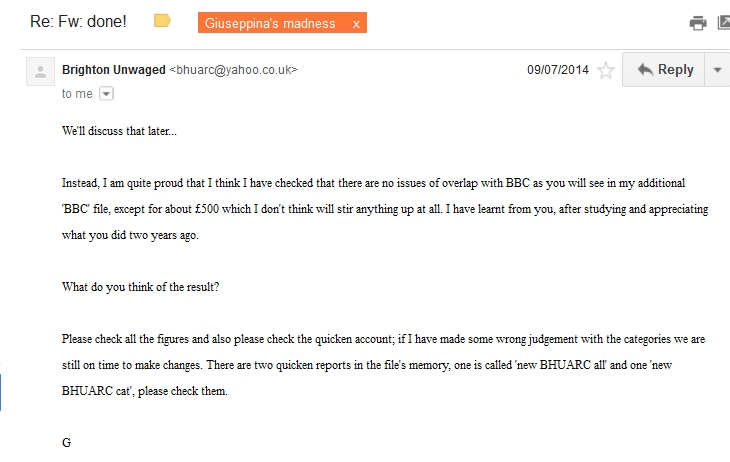 charities, which had £70,000 in funds when I left, rapidly ran out of money because of a combination of financial maladministration by Giusepina Salamone, thefts of money and toys coupled with