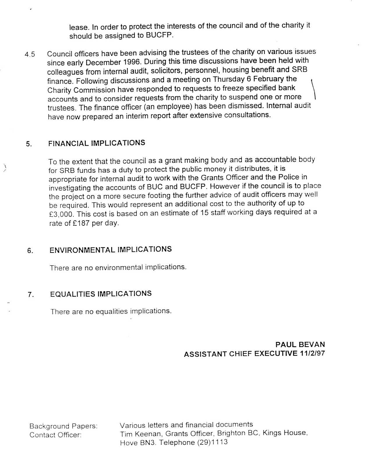 intervention 20 years ago when it froze the funds of Brighton Unemployed Centre