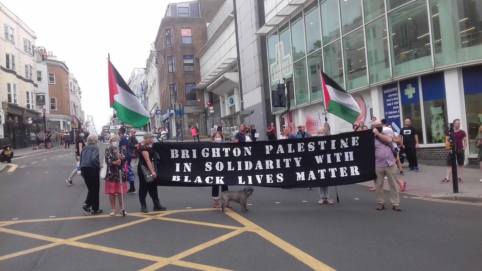 I attach a few clips of the demonstration and photographs. Once again Brighton and Hove PSC greeted the marchers with a big banner and the marchers reciprocated. There is little need to convince Black people and anti-racists of the connection between violence against Black people and Zionism. After all, despite Keir Starmer pretending that it is an ‘anti-Semitic trope’ to make mention of Israel’s role in training the US cops, the links are there and self evident. Not least from the Zionists’ own admission.Tony Greenstein