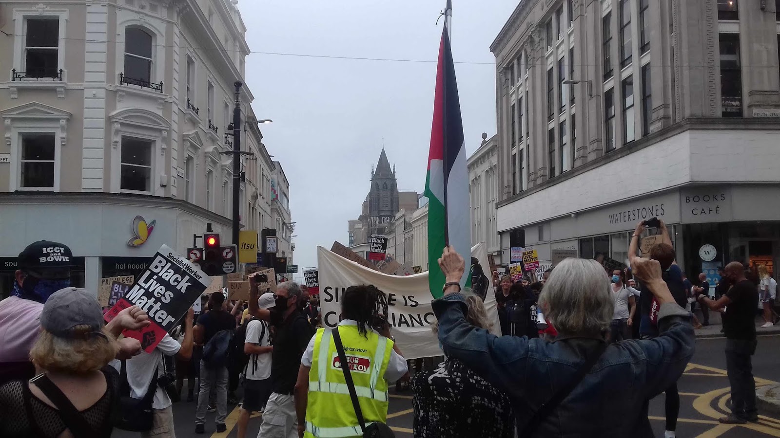 Today’s demonstration was the smallest of the three which have so far been held in Brighton. I estimate the size was about 3,000 but it was also the sharpest politically. It focused throughout on the question of Police Violence and the failure of Sussex Police to investigate the case of Jay Abatan, a Black man in Brighton who was murdered 20 years ago.