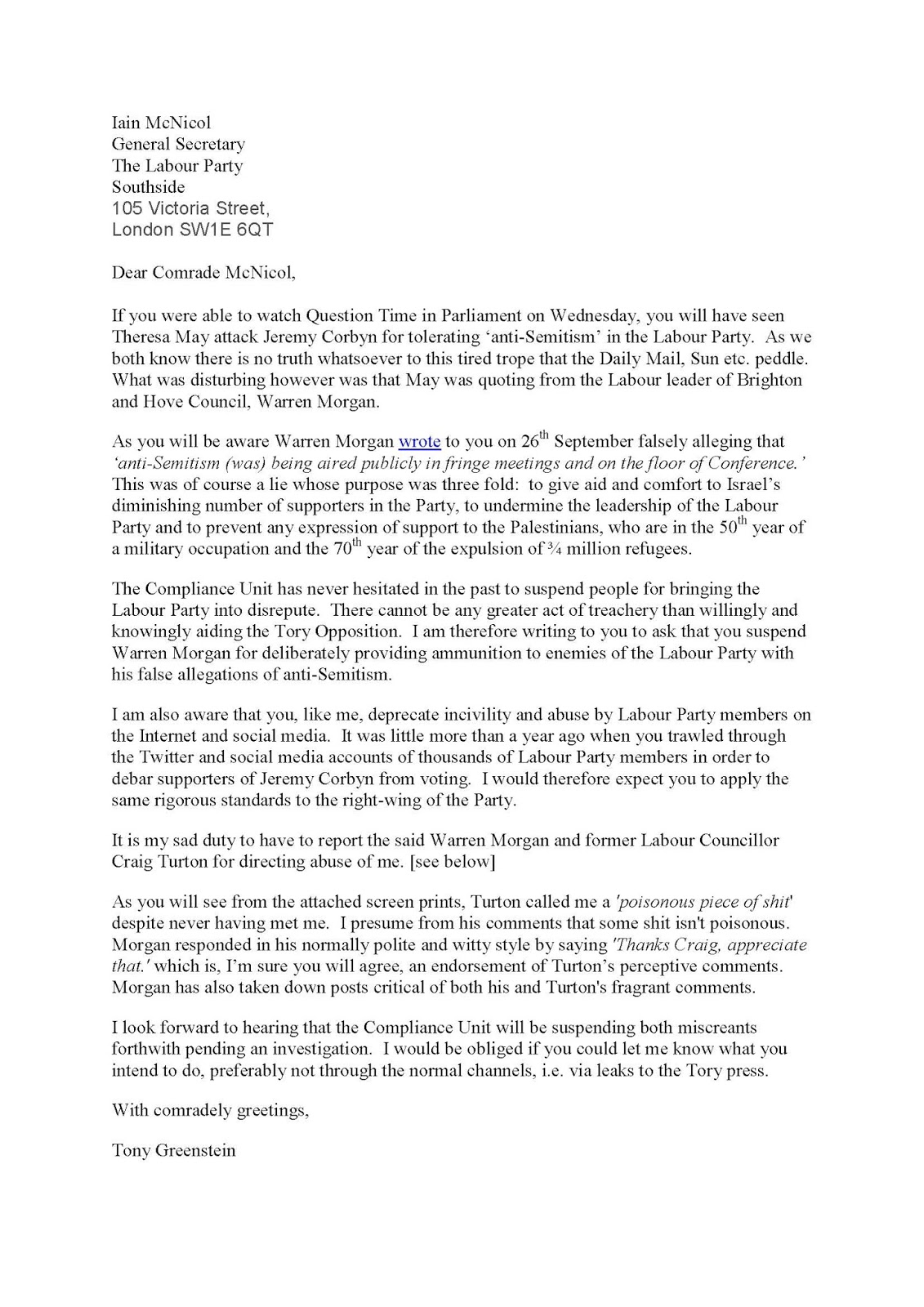 Corbyn. That was precisely Warren Morgan’s intention when he issued his Facebook statement that Labour’s conference was antiSemitic and would no longer be welcome in Brighton.