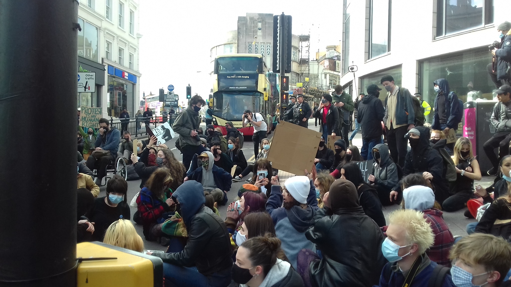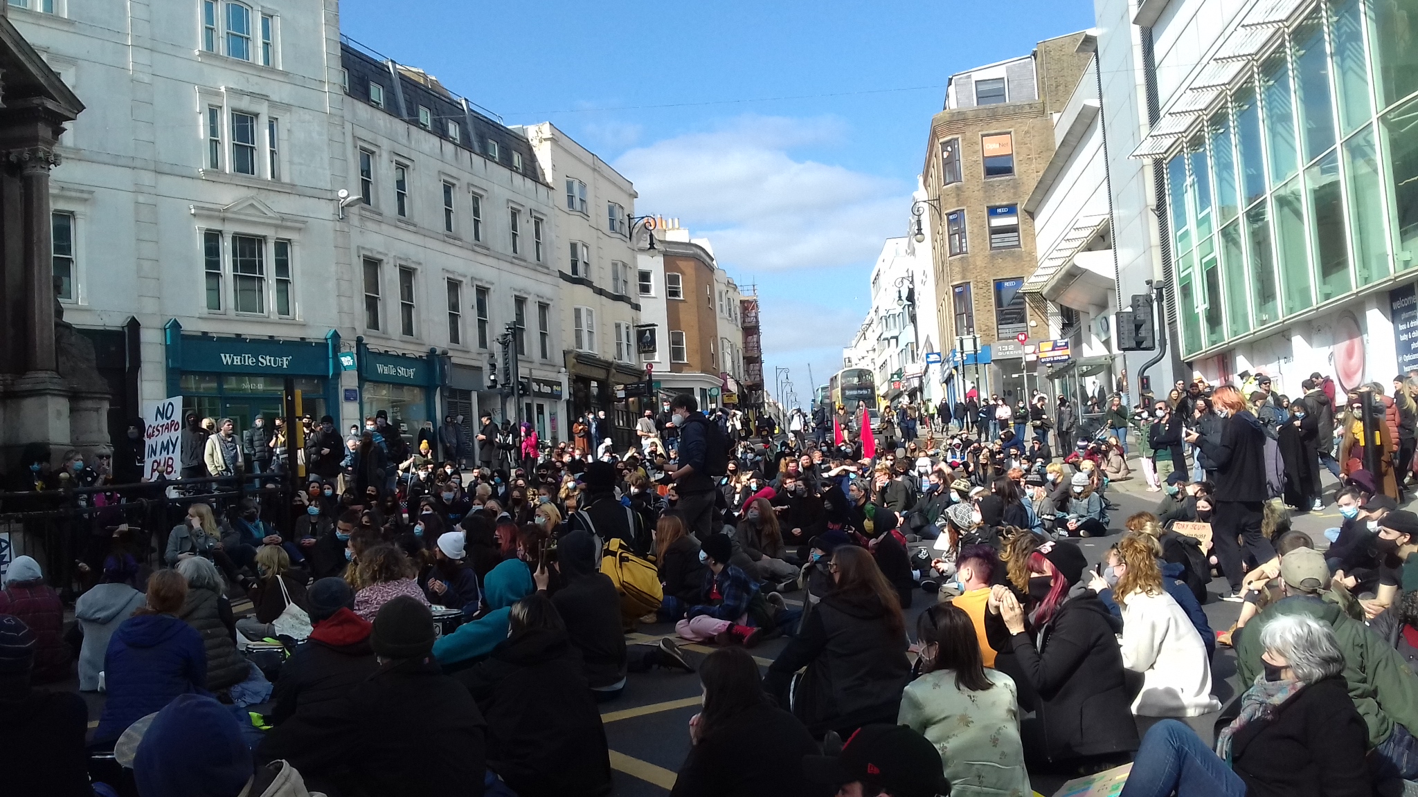 About 1,500 demonstrators gathered at The Level in Brighton to protest for the third week in succession at the Police, Crime, Sentencing and Courts Bill which will make it a crime to hold a march which is in any way effective. If it annoys anyone, which is usually the purpose of the protest then the Police can ban it.