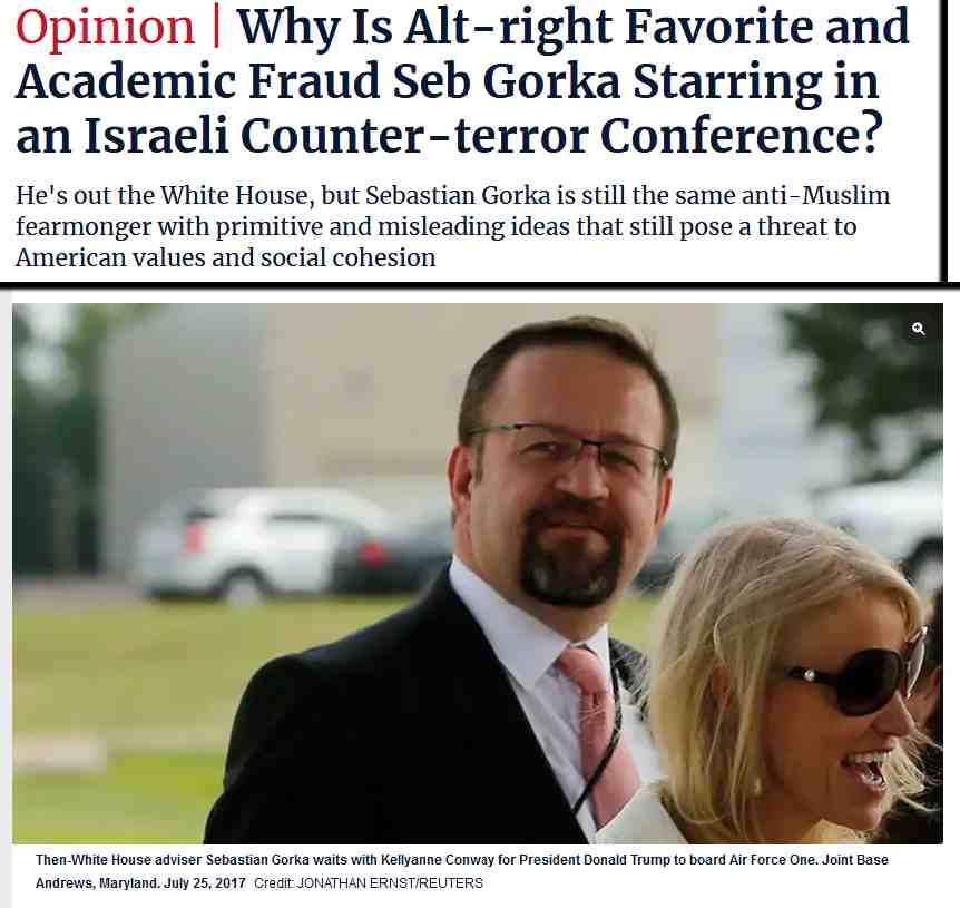 Not forgetting our old friends the Zionist Organisation of America led by Mort Klein. The ZOA distinguished itself after Trump was elected by inviting the anti-Semitic Steve Bannon, Trump’s special advisor as a guest of honour. Bannon told his former wife that he didn’t want his girls going to a school where there were lots of ‘whiny brat’ Jewish children. The ZOA also invited Sebastian Gorka, a member of the Hungarian fascist Vitezi Rend.