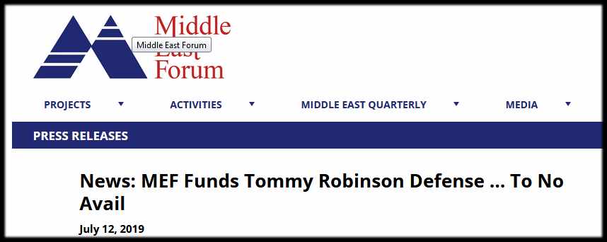 As even the Jewish Chronicle pointed out these organisations include the Middle East Forum (MEF), whose President, Daniel Pipes is an open racist and part of the ‘counter-jihad’ movement. The MEF was, by their own admission, ‘heavily involved’ in funding the legal defence of Tommy Robinson, who was gaoled for contempt of court.