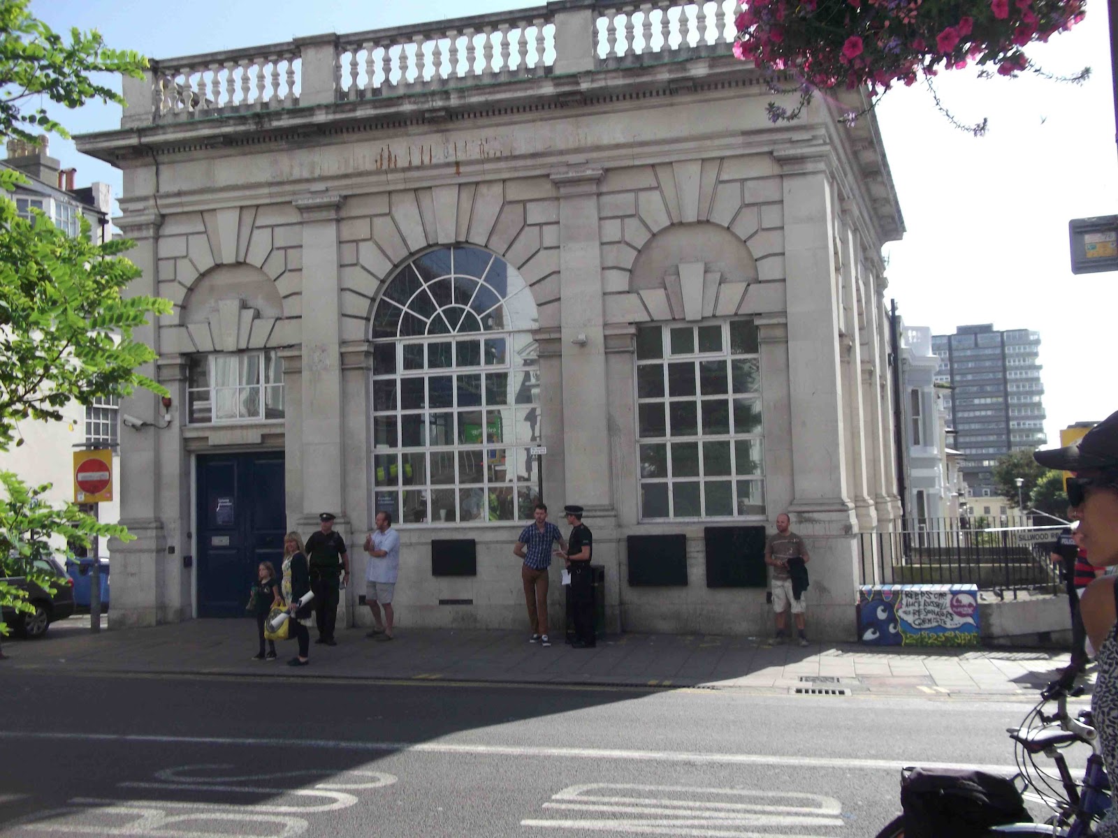 They arrived in force with a police minibus and another car, but however many police came they couldn’t beautify a shop that sells stolen goods and trades in the products of ethnic cleansing.