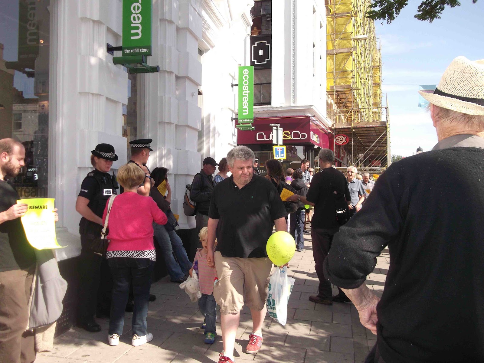 Sodastream (or Ecostream – its attempts to endear itself to Green Brighton) is beginning to make itself very unpopular in Brighton. All 750 leaflets we produced were taken as barely a single customer entered the shop. In fact I counted just one person buying anything in two hours. So desperate were they that at one stage they started distributing free drinks in order to entice customers in!”