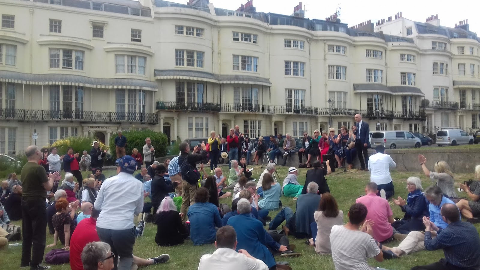 Over 150 people attended this wonderful outdoor meeting. There was a determination amongst people that we would not be silenced or prevented from meeting. That the littler Hitlers and petty dictators who had sought to prevent us meeting would and did fail. As I said in my speech, 40 years ago the National Front had tried to stop the Left in Brighton meeting. They failed then and those who tried to stop us meeting, the Kyles and the Fiona Sharpes of Sussex Friends of Israel have failed now. Unfortunately the Quakers when it came to standing up to powerful lobbies simply folded.