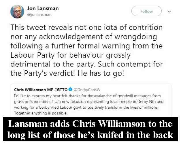 In the meantime the case of Chris Williamson should be withdraw from the National Constitutional Committee as there is no case to answer
