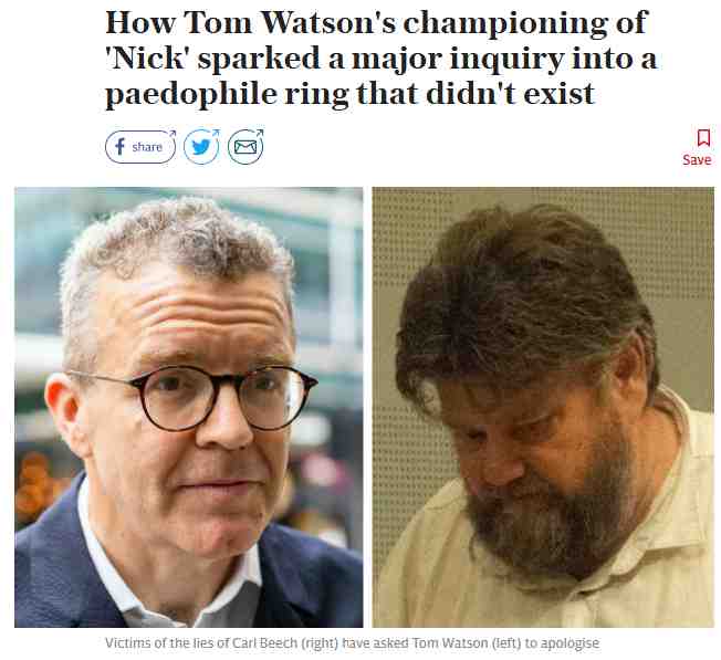 Tom Watson didn’t merely raise the issue of a possible VIP paedophile ring, he positively encouraged Carl Beech, who has himself been convicted of sexual abuse of children, to make wild and fantastic claims of abuse. Although I hold no brief for Harvey Proctor, who when he was an MP was a member of the far-Right Monday Club and a fellow-traveller of the National Front, the allegations made against him were clearly preposterous and without foundation. Watson abused parliamentary privilege to make these claims. In this sense Proctor is right to call Watson the ‘cheerleader-in-chief’ for Carl Beech.