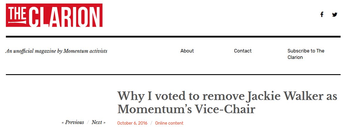 decision to remove Jackie from Vice Chair of Momentum is also a criticism of