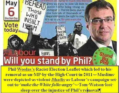 81. Why were the ‘whistleblowers’ not asked why they did not consider suspending Tom Watson, Deputy Leader of the Labour Party, for having supported racist Labour MP Phil Woolas? Woolas was removed as an MP by the High Court in 2010 for having lied about his Lib Dem opponent in the General Election. Woolas fought a racist campaign to ‘make the white folk angry’ and Watson gave him full support confessing that ‘I’ve lost sleep thinking about poor old Phil Woolas’.