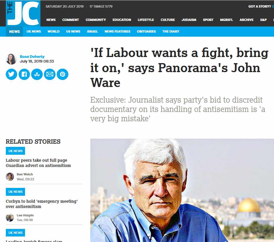 27. Why did Panorama not interview the well-known Jewish Chronicle and Jewish Telegraph columnist Dr Geoffrey Alderman, who is himself a Zionist, of Buckingham University, who wrote an article in The Spectator recently,Is Jeremy Corbyn really anti-Semitic?, rebutting the absurd accusations that Jeremy Corbyn is an anti-Semite? Would this have been too embarrassing for the BBC and John Ware?