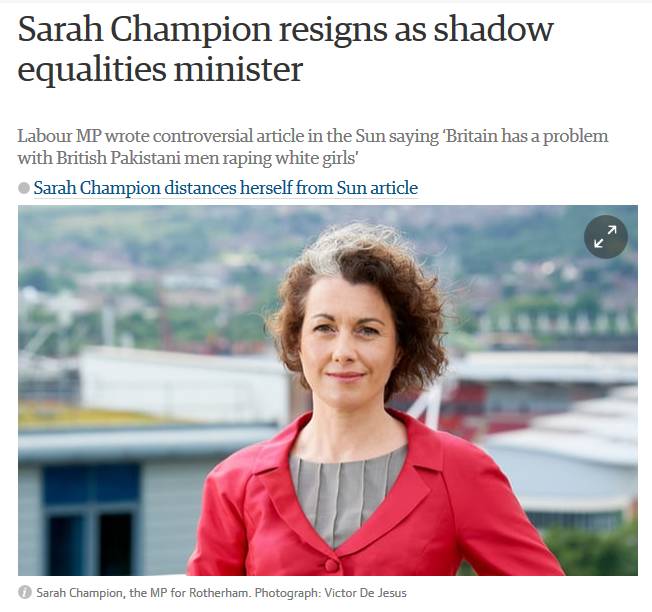 Equalities Minister, Sarah Champion. It’s entitled “British Pakistani men ARE