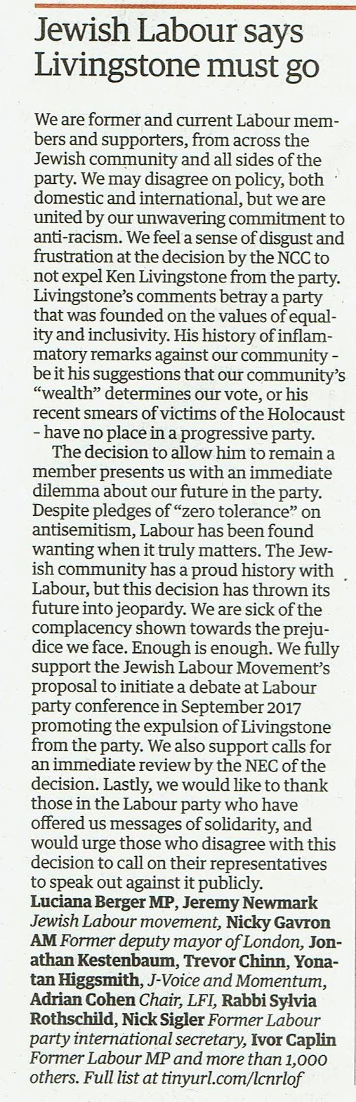 Right for the expulsion of Ken Livingstone. [Jewish Labour members say