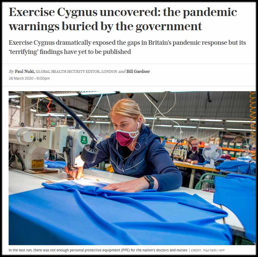 This attitude to workers’ safety is as unacceptable as it is predictable. The government has miserably failed in its duty to ensure that there were adequate stocks of PPE and ventilaors in reserve in case of a pandemic. It was not as if they didn’t know. In 2016 there was a mock exercise Cygnus in case there was a pandemic. The shortages were noted then and recommendations made. What happened? The Report was buried. Austerity trumped safety concerns with the results all around us.
