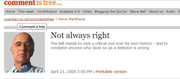 | The Guardian’s Comment is Free always had time for this hypocritical ‘opponent’ of anti-Semitism and supporter of Bush’s CIA coup against Chavez |