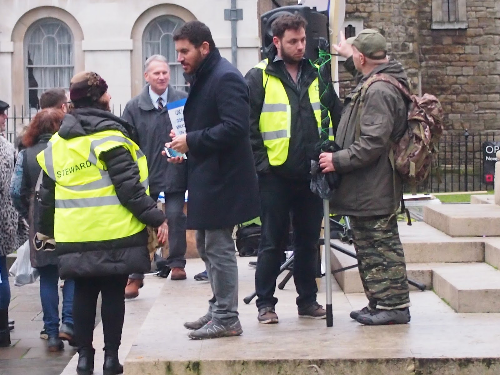 | Paul Charney, Chairman and Arieh Miller, Executive Director of Zionist Federation in conversation with EDL member |