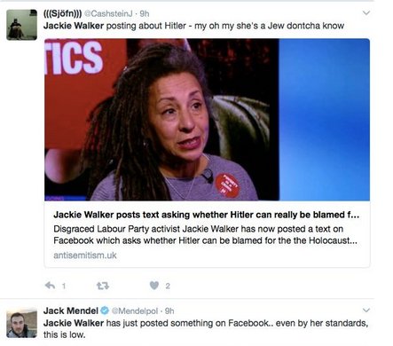 early. When they saw the Jackie Walker quote that the Palestinians had paid the price for the Holocaust, they had no hesitation in deciding that ‘Nazi’ and ‘Jackie Walker’