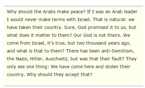 with. It was because ‘we’ i.e. the Zionists had stolen their land. And Ben Gurion recognised that it was no use