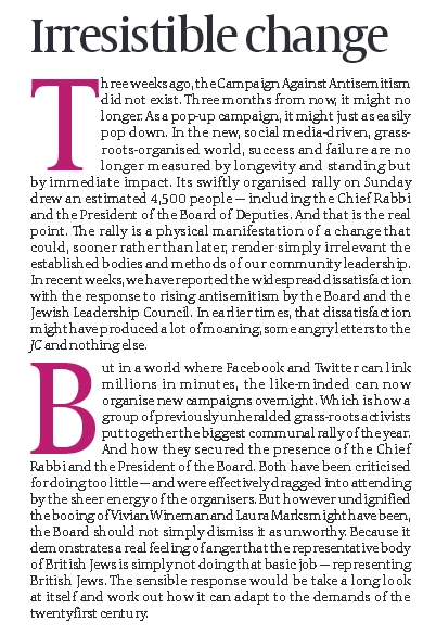 and mobilise British Jews, by suggesting that demonstrations against Israeli