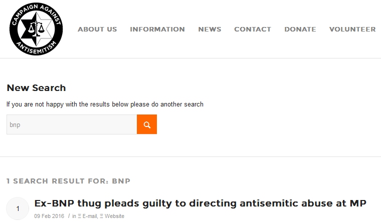 | The only reference to the BNP on CAS site is to an ‘ex BNP thug’ |