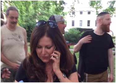 | Jonathan Arkush is seen here speaking to an audience including 2 members of the neo-Nazi Jewish Defence League of the late Rabbi Meir Kahane – Roberta Moore and her boyfriend de Jonge bottom left. |