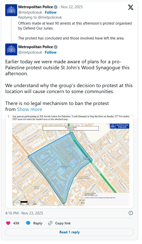 What the Met are doing is supporting British foreign policy which is giving support to the genocide in Gaza. Having received no less than 9 complaints from Zionists like @Heidi Bachram, they decided to spare no expense in arresting me. Ms Bachram was operating in the best traditions of Jews who had betrayed fellow Jews to the Nazis.