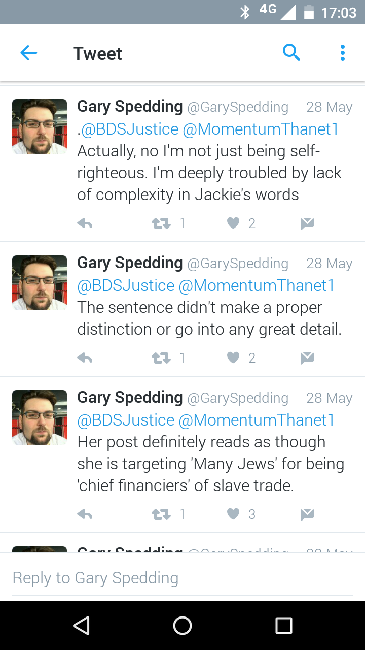 in particular and policing Zionist events whilst stirring fears of anti-Semitism. Despite Spedding’s best efforts I am reposting