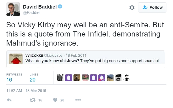 As Badiel tweets, ‘Vicky Kirby may well be an anti-Semite. But this is a quote