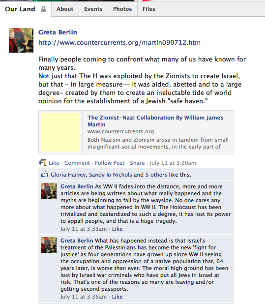 anti-Zionist Jew who has been active in Palestine for 10 years, Greta Berlin’s