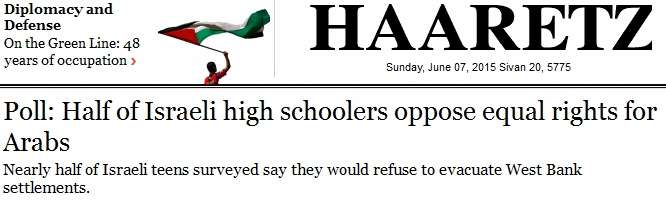 It is therefore no wonder that half Israel’s Jewish students oppose equal rights for Arabs. That is the consequence of a Jewish state which privileges one section of the community at the expense of another.