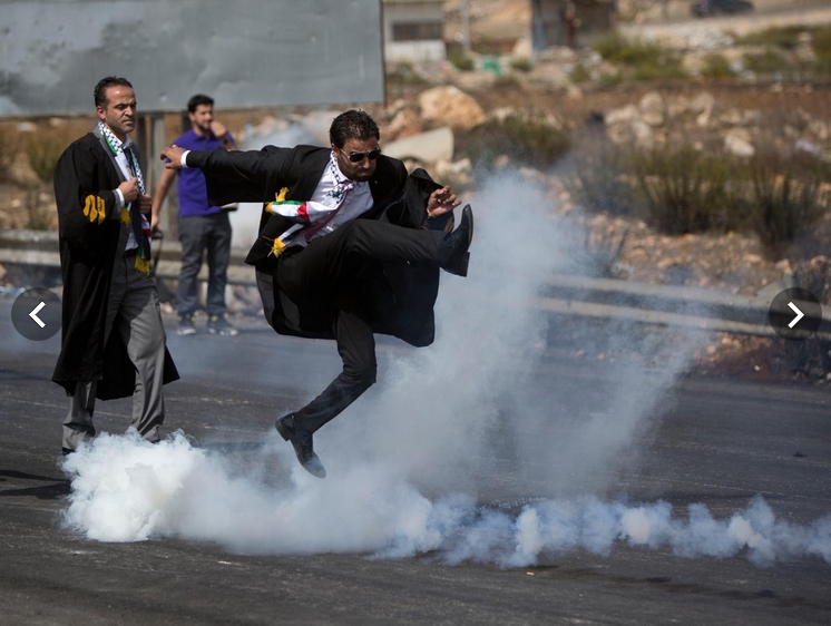 | Palestinian lawyer in Ramallah kicks tear gas grenade back to the rats who fired it |