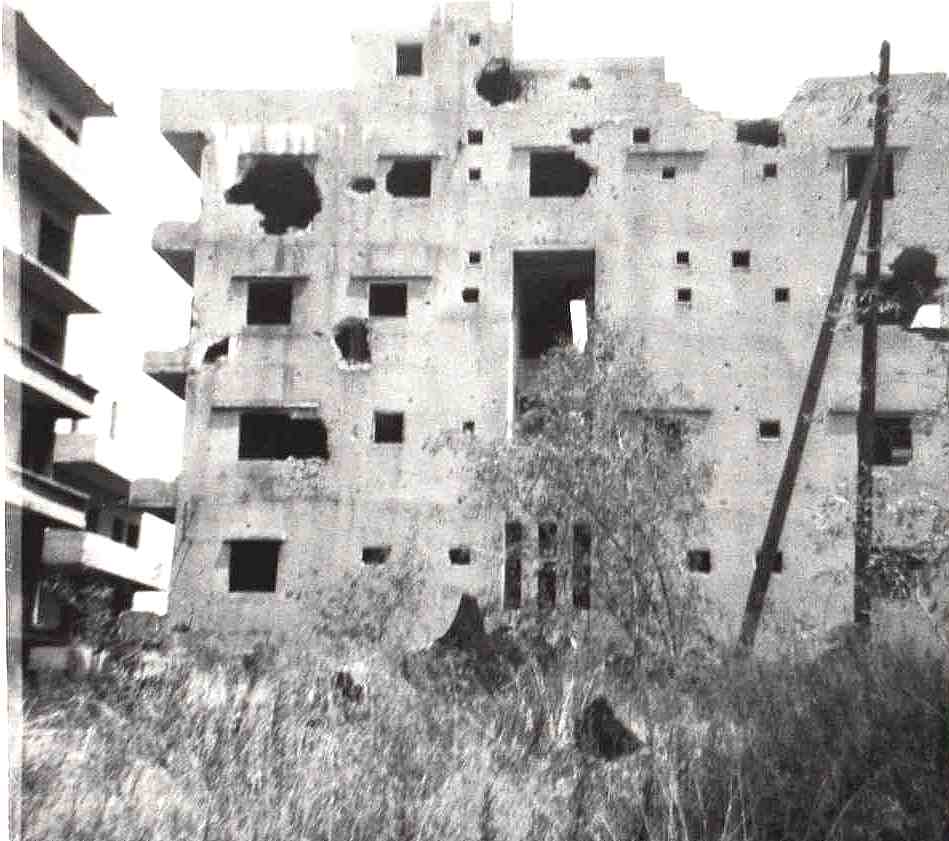 What was saw, as the pictures demonstrate, was the remnant of the utter savagery that befell Tel al Zatar. Buildings with gaping holes in them and not a soul living there. On our way back we were arrested by the Lebanese Army and held for a few hours but we eventually convinced them that as guests of the PLO it would not make sense for them to detain us any longer.