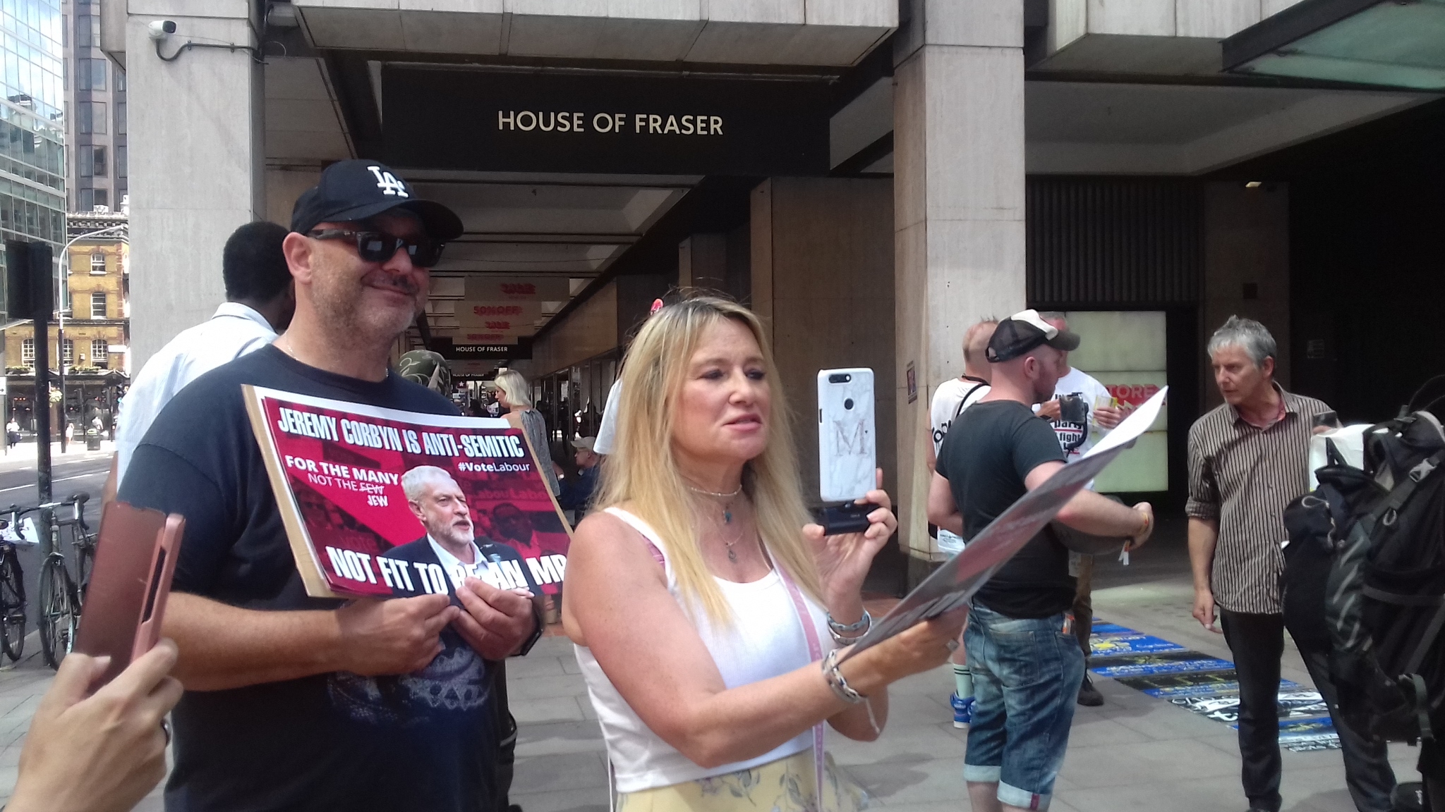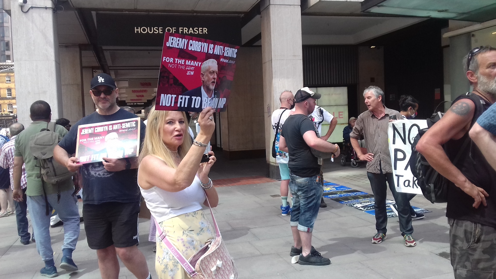 There were a handful of Zionists present of the fascist variety led by Mad Melanie Gharial. They were sporting ‘For the Many not the Few Jew which I explained to them was anti-Semitic as it implied that British Jews are all part of the wealthy few. Mad Mel also told me that she has ‘two beautiful children’. My response was that it was fortunate that they didn’t resemble their mother! Melanie always looks as if she was unhappy. Supporting war crimes all day must take its toll, even on this supporter of Tommy Robinson!