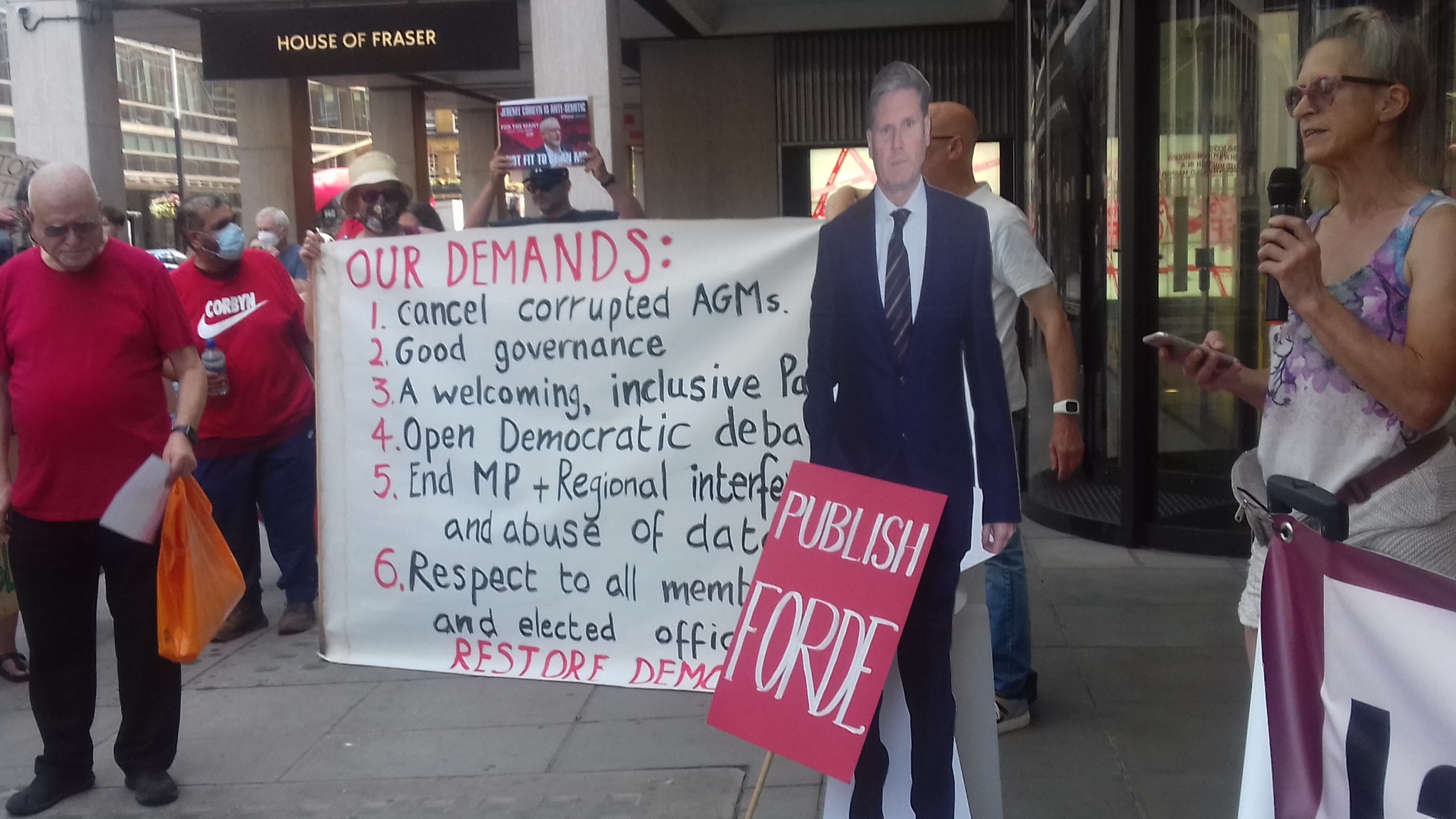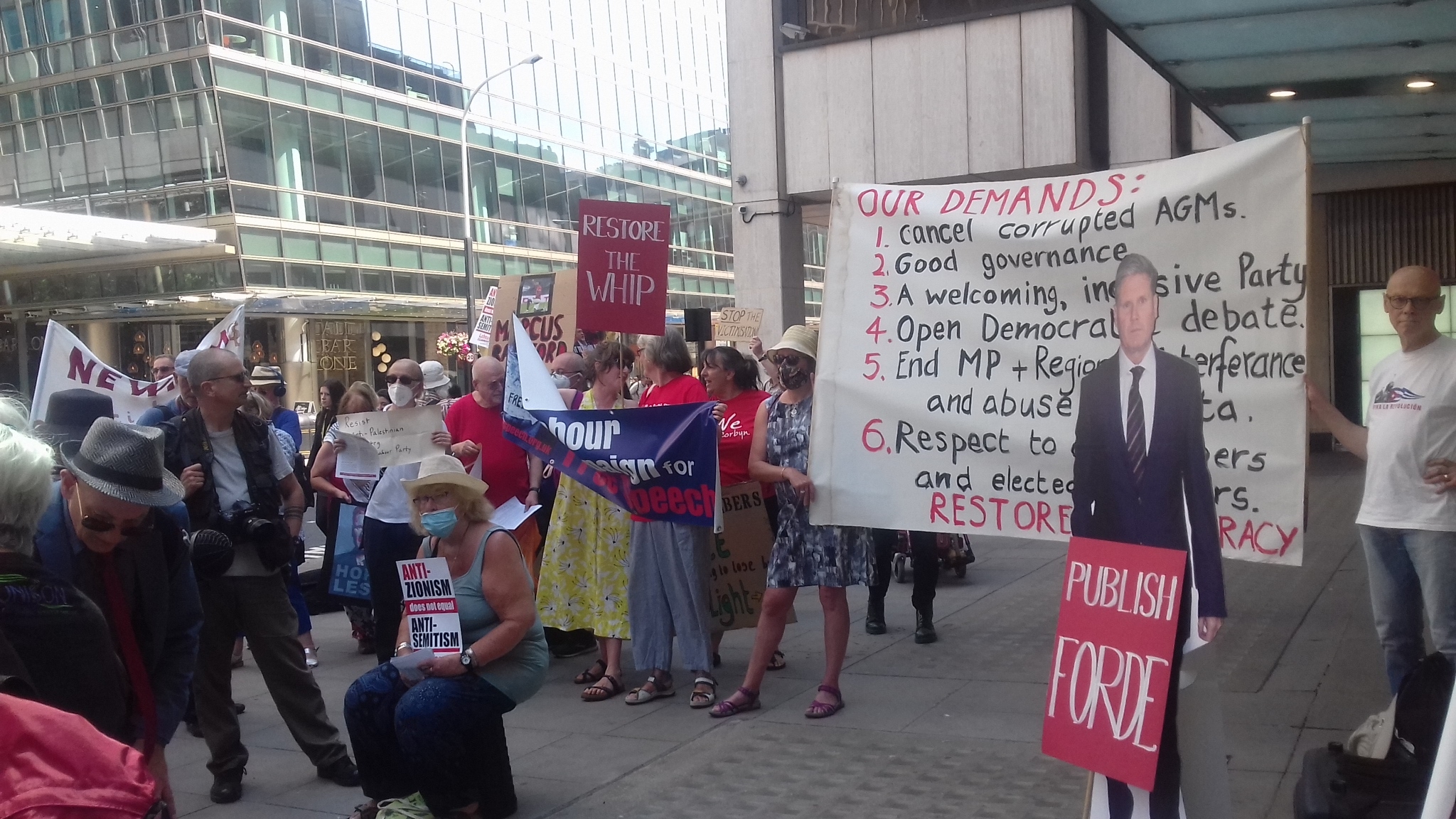 Although it only came together at the last minute, the joint demonstration outside Labour’s Party in Victoria Street, London organised by Labour Against the Witchhunt, Labour in Exile Network, Jewish Voices for Labour and the Labour Representation Committee, was an unqualified success. It was a demonstration that people want an end to Starmer and Evan’s dictatorship and to see a return of democracy, free speech and justice in the Labour Party.