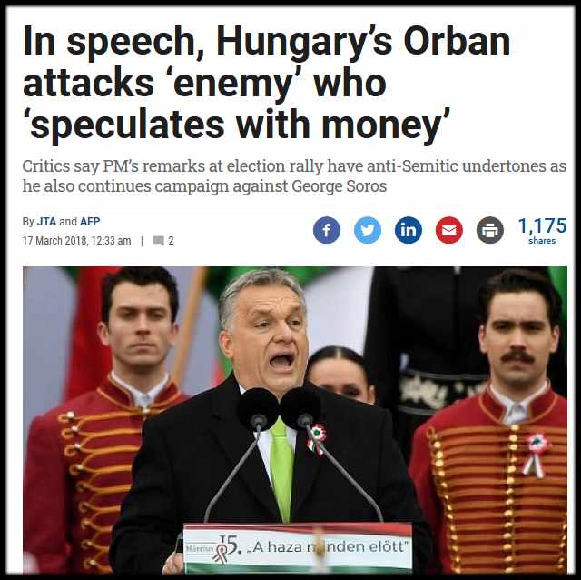 In fact it was blindingly obvious that the Hungarian Prime Minister , Viktor Orban’s target was Jewish. Orban, won the 2018 General Election in Hungary by basing his campaign on the demonisation of George Soros. He didn’t need to explicitly mention that Soros was Jewish because this was so well known and his supporters made it explicit.