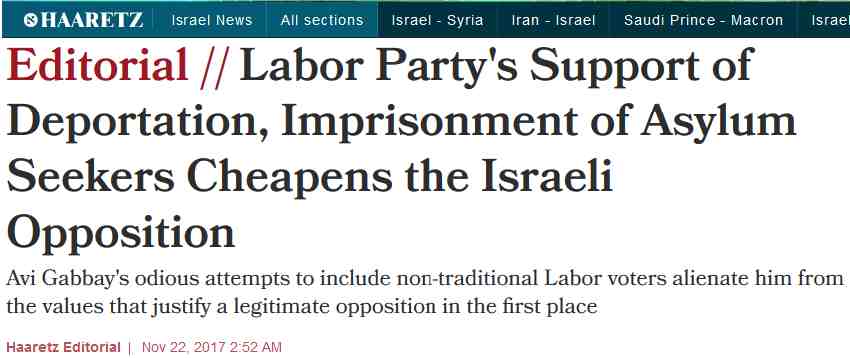 Israel’s attempt to deport 40,000 Black African refugees. The Israeli Labour Party opposes the